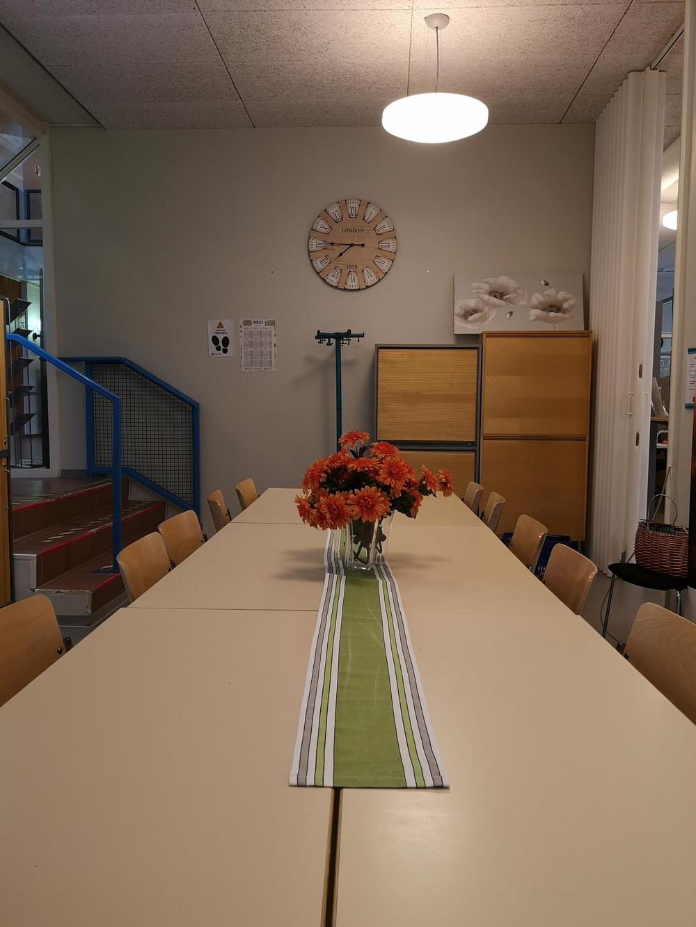 Pysäkki on n. 12-15 henkilön kokoustila Kumppanuuskeskuksen katutasossa. Kokoustilan tarvikekaapin alaosassa on vedenkeitin. Tilassa on videotykki (HDMI-kaapeli). Tilassa toimii langaton verkko.